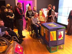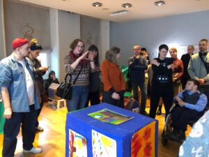 Итоговое мероприятие проекта объединило художников, специалистов Инклюзивного отдела Русского музея, благотворительной организации «Перспективы», волонтёров Фонда «В поисках гармонии», БОО «ПОДОРОЖНИК», и, конечно, заинтересованных гостей с целью найти точки для диалога и взаимного обучения через искусство.